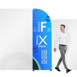 Wydruk wykonujemy techniką sublimacji na wysokiej jakości materiale Display Stretch 180 g, który cechuje znakomite nasycenie bartw. W tym wypadku są to dwie warstwy materiału połączone ze sobą zamkiem, dzięki któremu po naciągnięciu grafiki na stelaż możemy ją idealnie napiąć. Zamek jest ukryty pod maskownicą, nie zaburza więc estetyki stoiska.