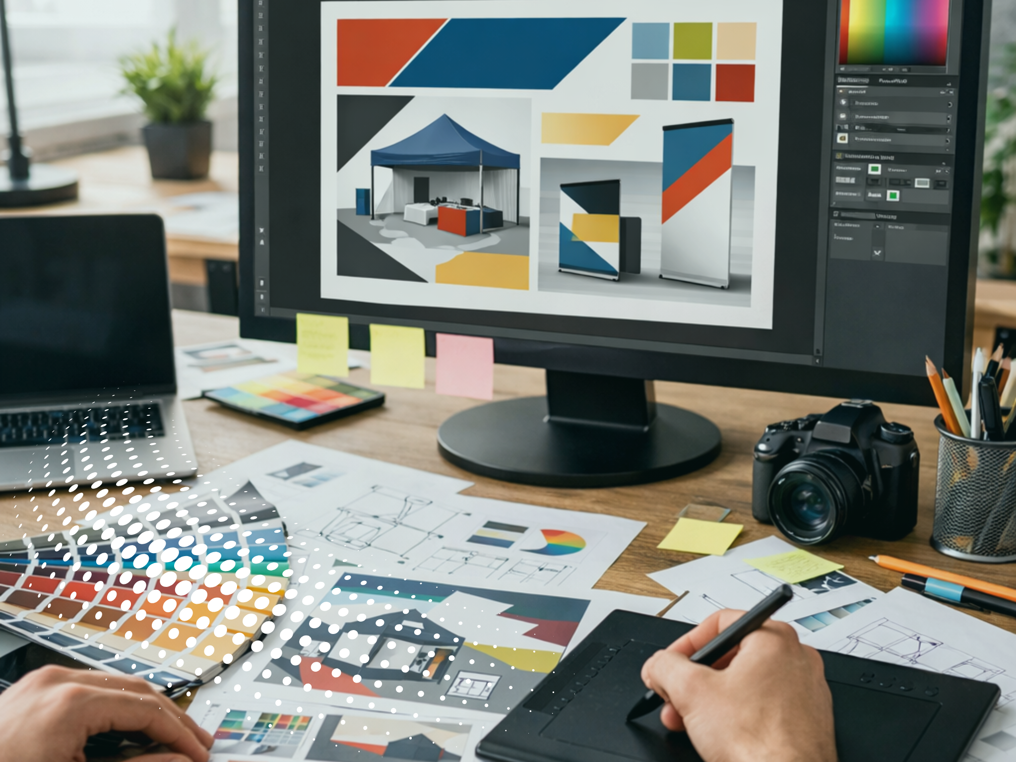 Szukasz projektu graficznego do rollupu, ścianki, flagi lub namiotu? Zobacz, dlaczego dobrze przygotowana grafika ma realny wpływ na odbiór marki i skuteczność reklamy.