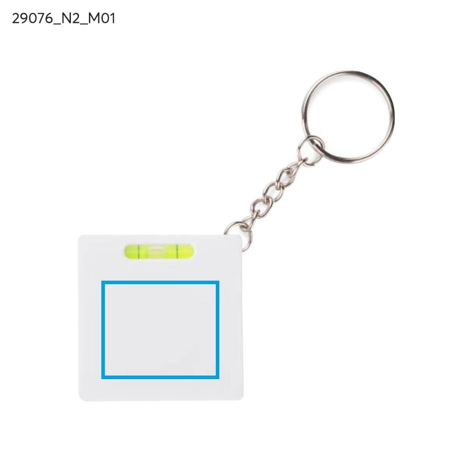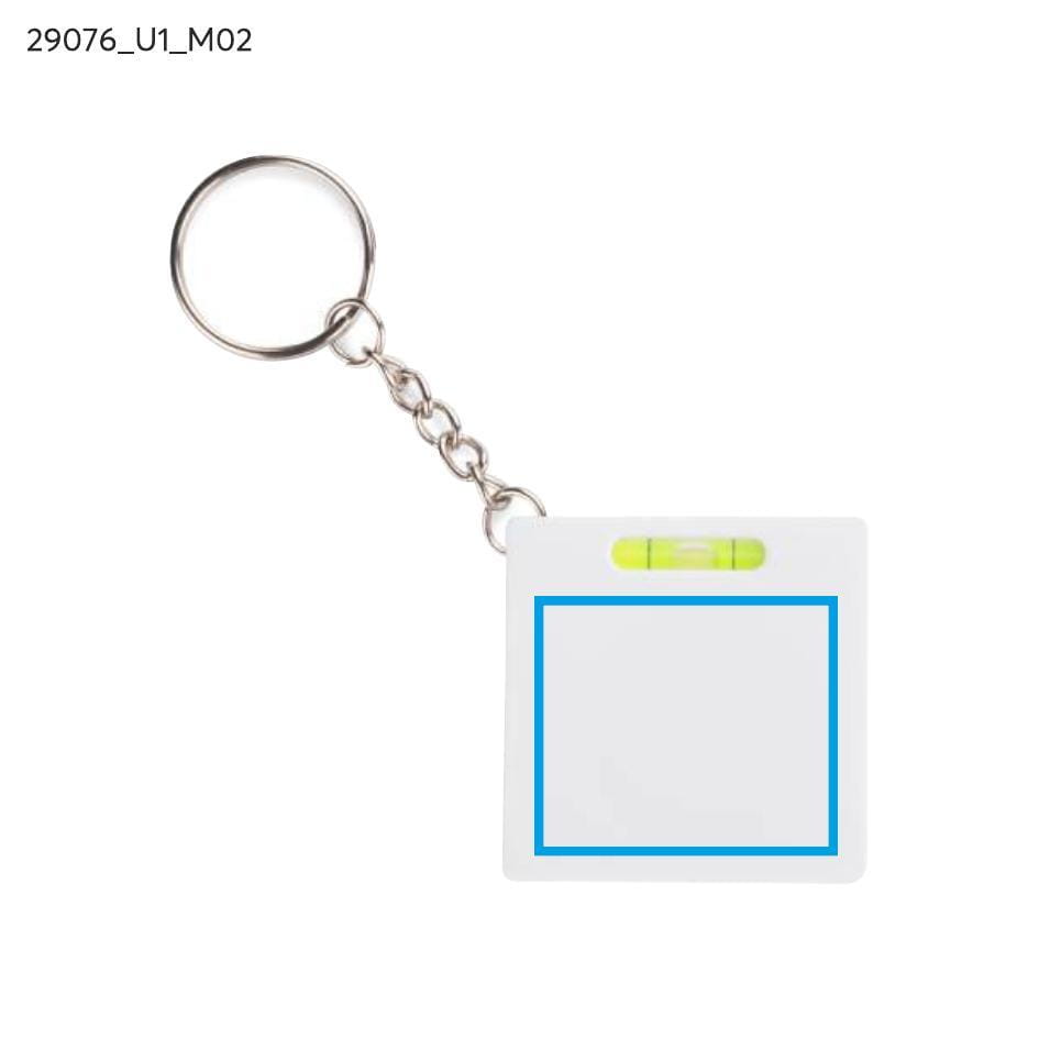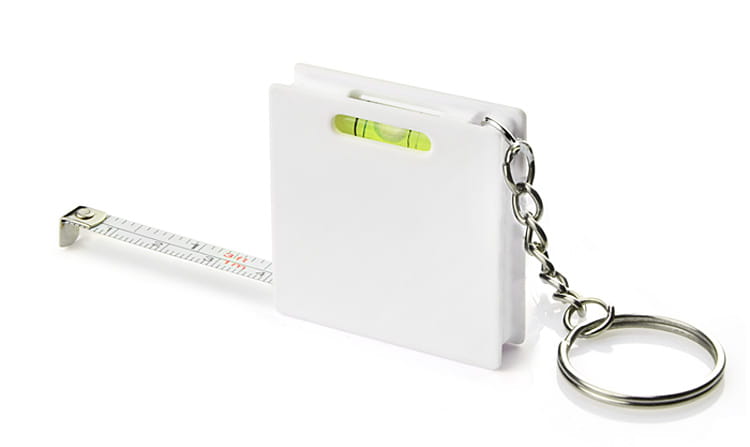Breloczek do kluczy z miarką o długości 1 m i poziomicą.