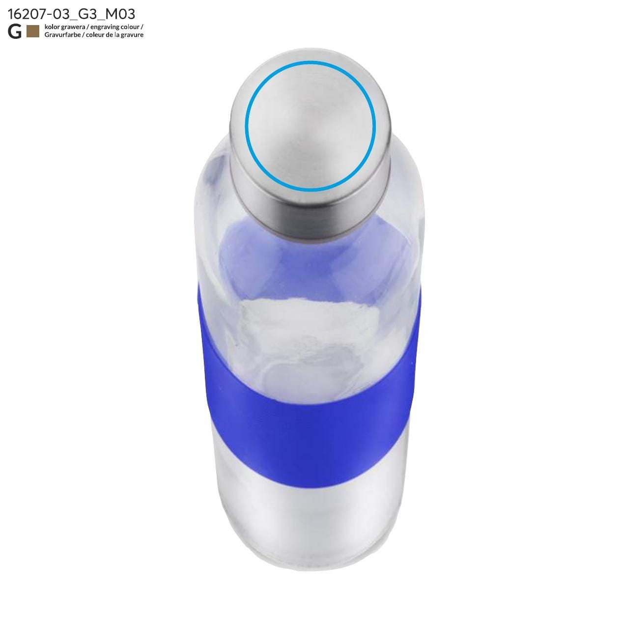 Butelka szklana GLASSI 510 ml niebieski z logo