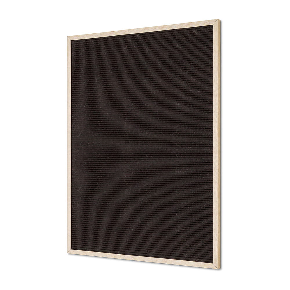 Obszar do przypinania posiada specjalne rowki przypominające linie z kartki. Powierzchnię użytkową otacza zależnie od wybranego wariantu - czarna lub jasnobrązowa, przypominająca drewno, klasyczna rama w stylu vintage. Nadaje ona produktowi elegancki wygląd. Tablica świetnie wpasuje się w różne rodzaje wnętrz - od biura, przez szkolną klasę, aż po pokój dziecięcy.