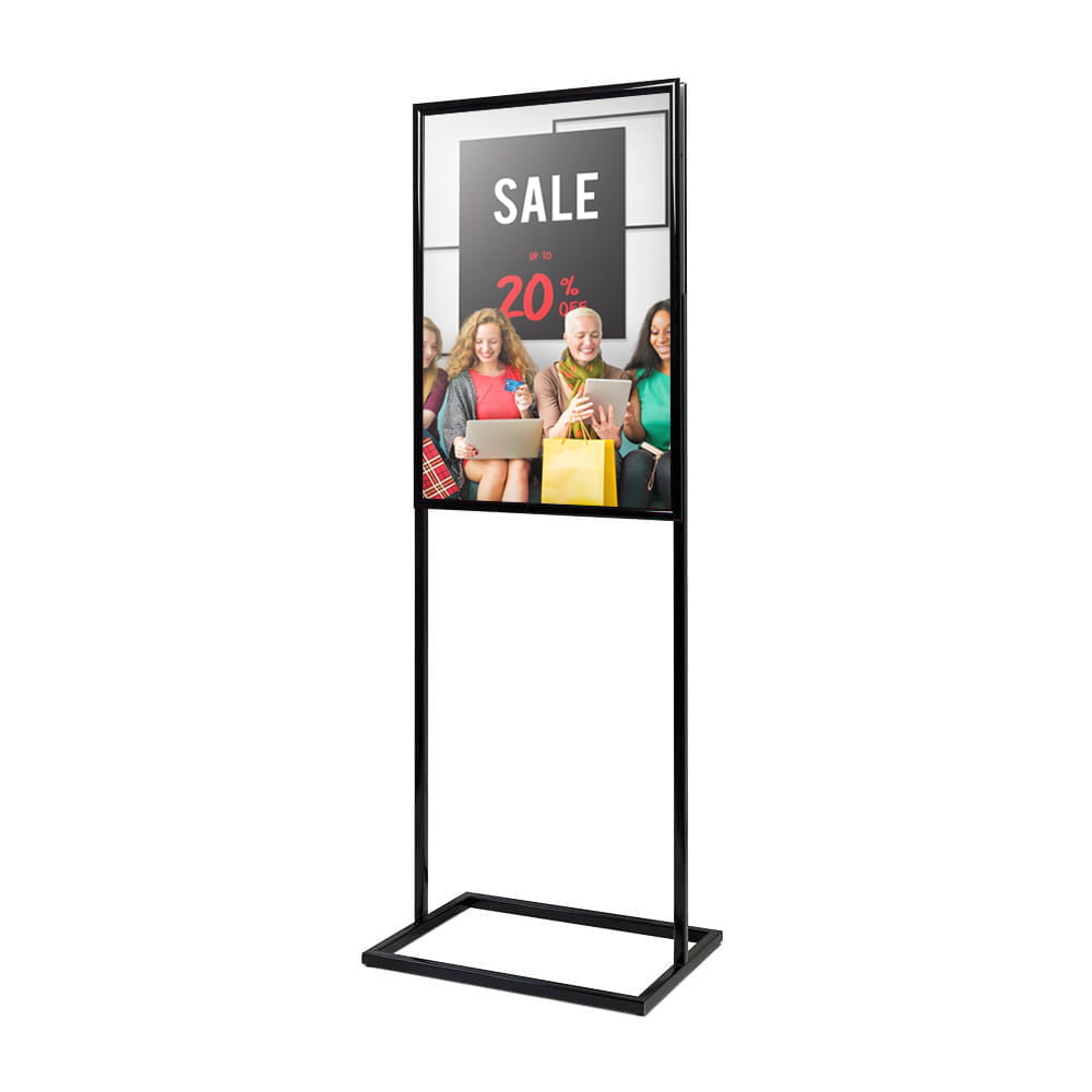 Prezentujemy niezwykle funkcjonalne narzędzie promocyjne. Dwustronny ekspozytor plakatów z ramą w formacie A1 to idealne rozwiązanie dla klientów, którzy chcieliby zaprezentować swoją ofertę szerszej ilości odbiorców jednocześnie.