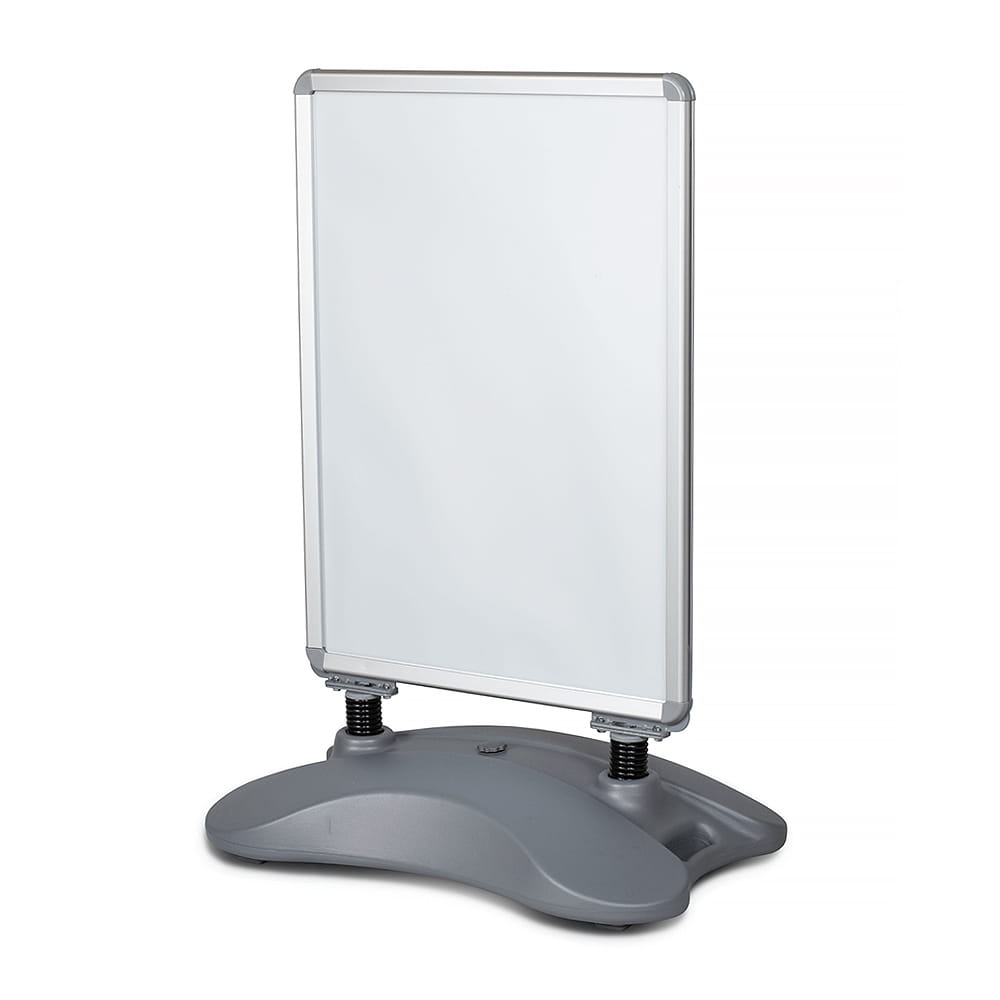 Dwustronny potykacz reklamowy A0 OWZ Water Base - srebrny potykacz reklamowy z zatrzaskową ramą OWZ i podstawą napełnianą wodą