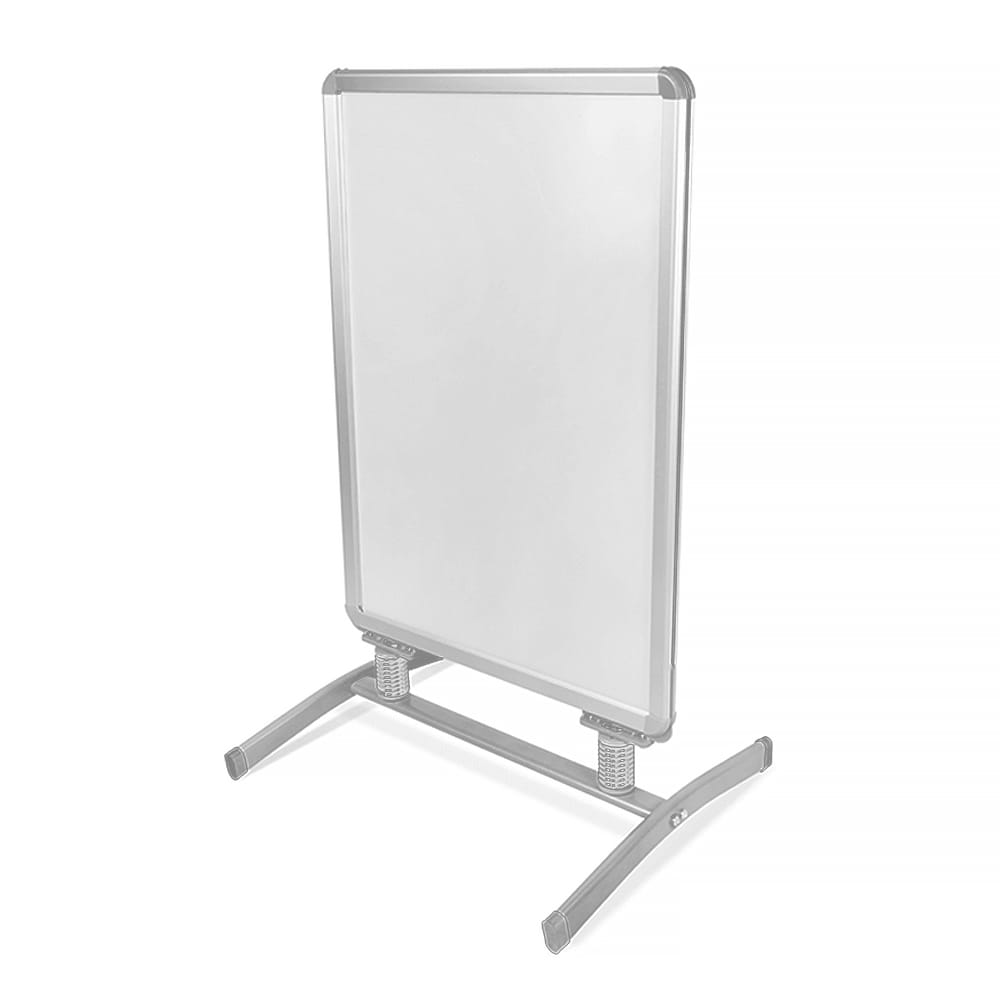 Dwustronny potykacz reklamowy A1 OWZ Iron Base - srebrny potykacz reklamowy z zatrzaskową ramą OWZ i stalową podstawą
