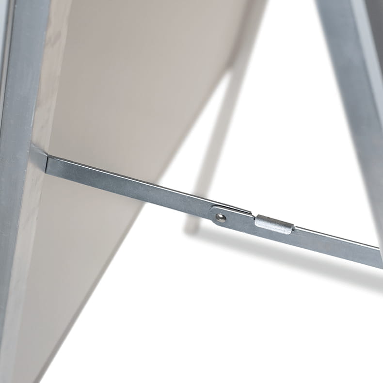 Dwustronny potykacz reklamowy B1 OWZ Economy - srebrny potykacz reklamowy z zatrzaskową ramą OWZ i plecami z polistyrenu