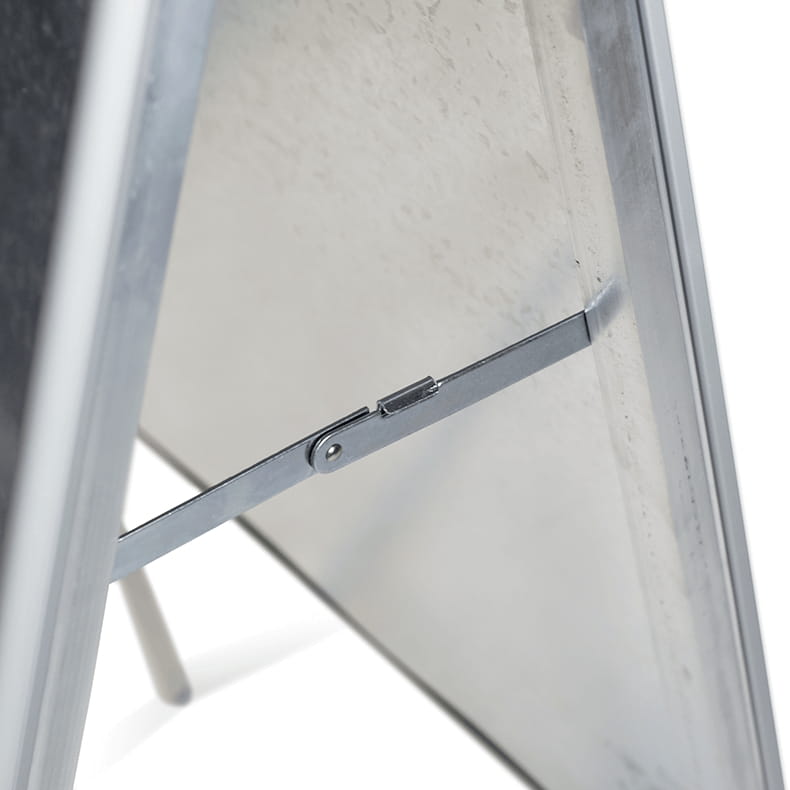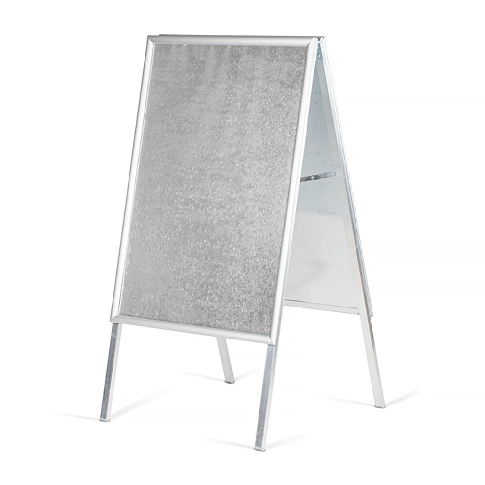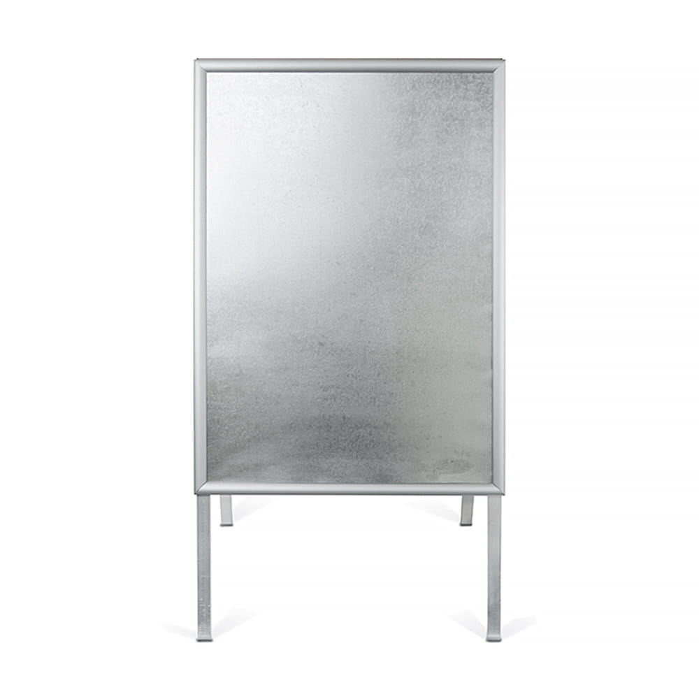 Dwustronny potykacz reklamowy B1 OWZ Premium - srebrny potykacz reklamowy z zatrzaskową ramą OWZ i plecami z blachy stalowej