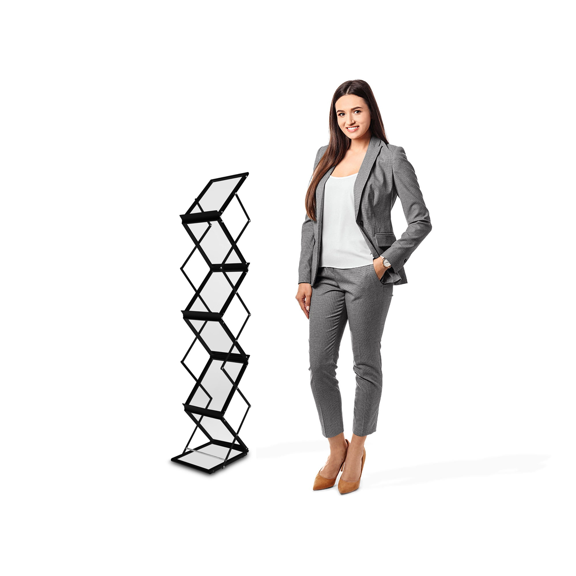 Dwustronny rozkładany stojak na ulotki 6xA4 AKRYL z walizą - czarny