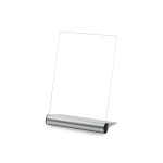 Stojak idealnie sprawdzi się do prezentowania pojedynczej ulotki, plakatu czy menu. Kąt nachylenia ułatwia czytanie. Dzięki minimalistycznemu wyglądowi, idealnie sprawdzi się w nowoczesnych pomieszczeniach. Sprawdzi się do postawienia na stole/ladzie we wnętrzach różnych instytucji publicznych, np. w bankach, hotelach, recepcjach itp.