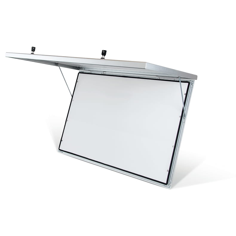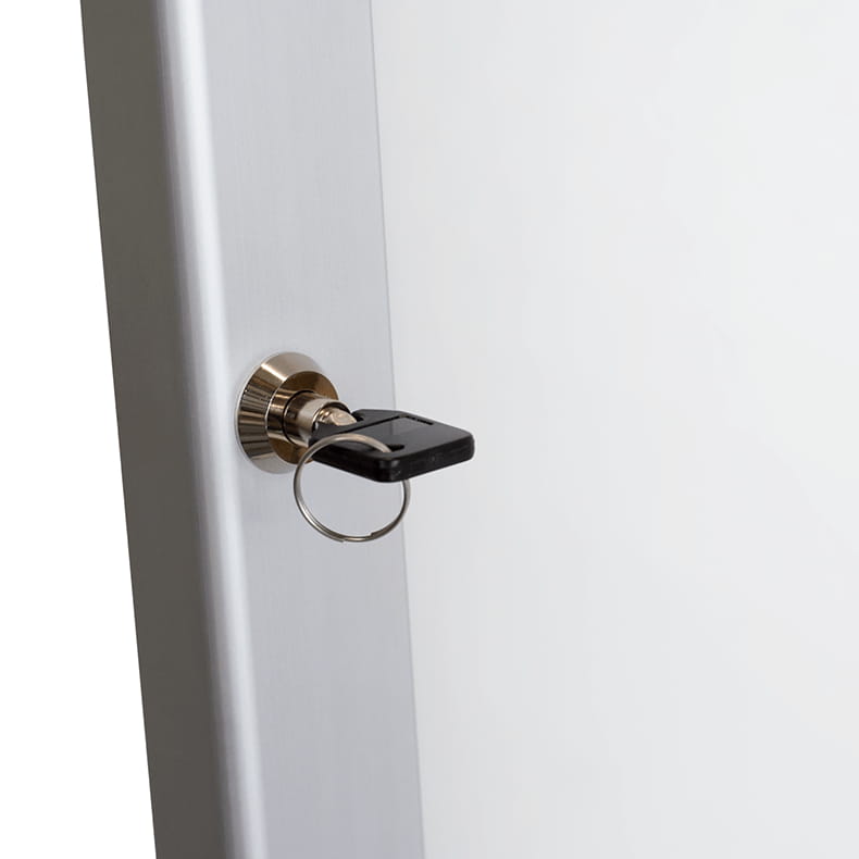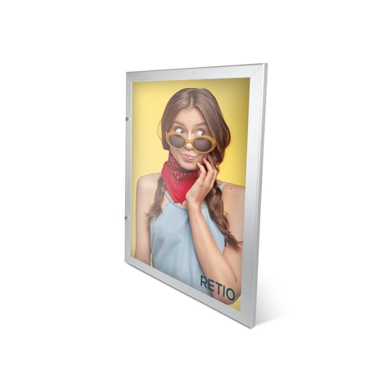 Solidna rama w kolorze srebrnym została wykonana z wysokiej jakości anodowanego aluminium odpornego na korozję. Panel przedni gabloty wzbogacono podwójnym zamkiem, który w pełni zabezpieczy Twoje treści przed dostępem osób niepowołanych. Specjalna uszczelka wodoodporna pozwala wykorzystać gablotę zarówno wewnątrz, jak i na zewnątrz budynków.