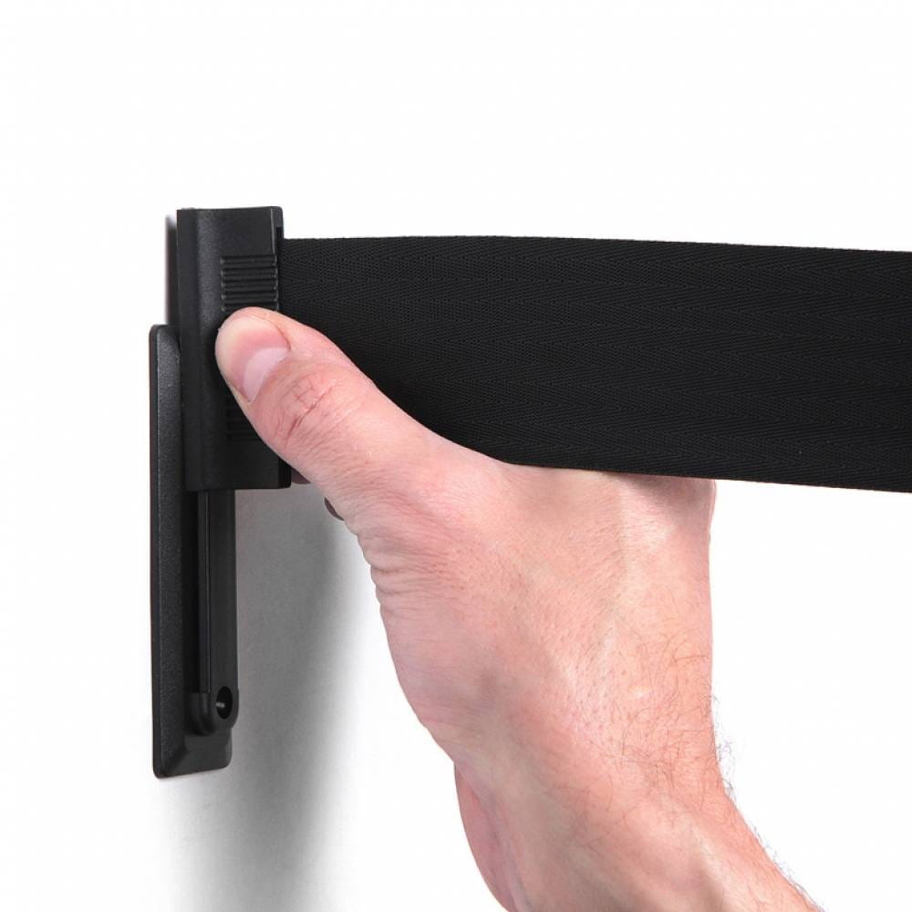 Uchwyt naścienny ze zwijaną taśmą lub też głowica naścienna - jest to system, który można zamontować do ściany i użyć go np. do odgrodzenia prześcia bez konieczności używania słupków odgradzających. Taśma o długości 270 cm jest więcej niż wystarczająca do odgrodzenia większości przejść. Użyte materiały i mechanizm zwijająca są niezwylkle solidne, i kupując ten system można być pewnym, że będzie służył przez długi czas.