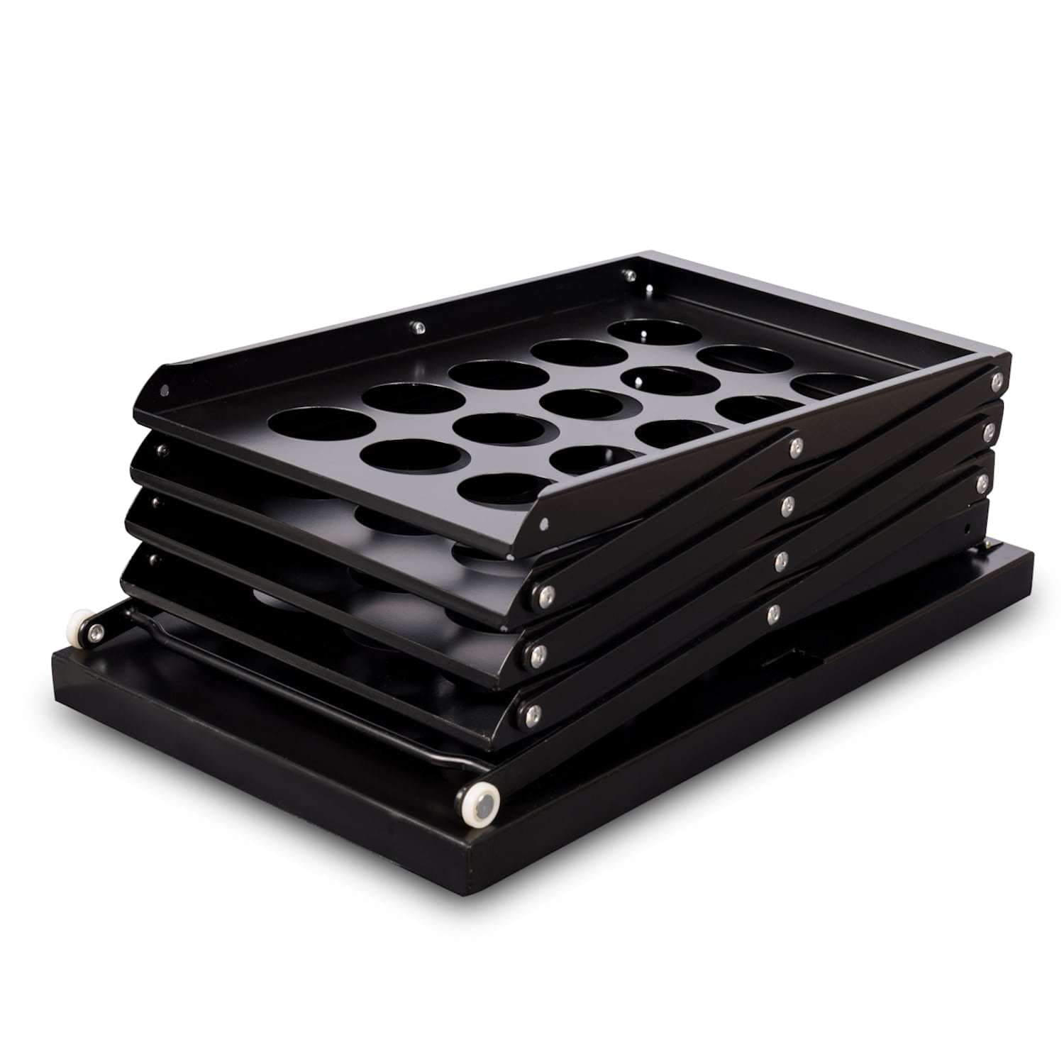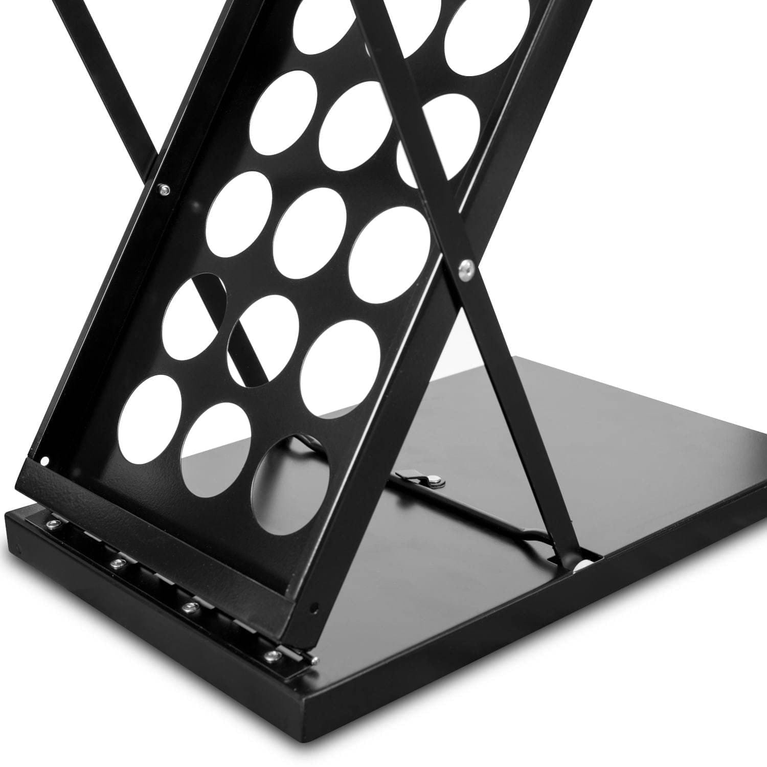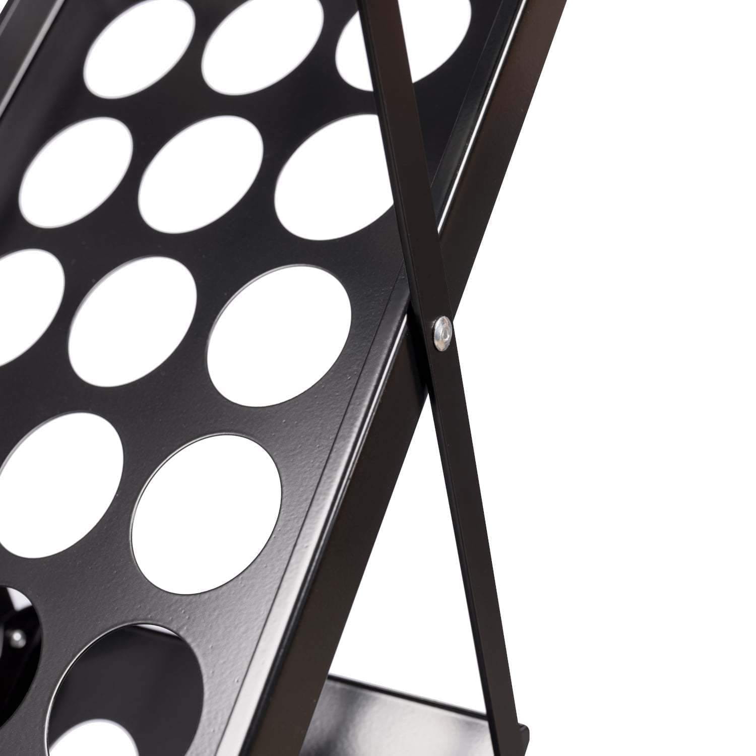 Turtle to metalowy stojak na ulotki i katalogi A4 malowany proszkowo na czarny kolor. Konstrukcja jest lekka, wytrzymała, a zarazem kompaktowa, co zawdzięcza mechanizmowi składania, który sprawia że osiąga bardzo niewielkie wymiary po złożeniu.
