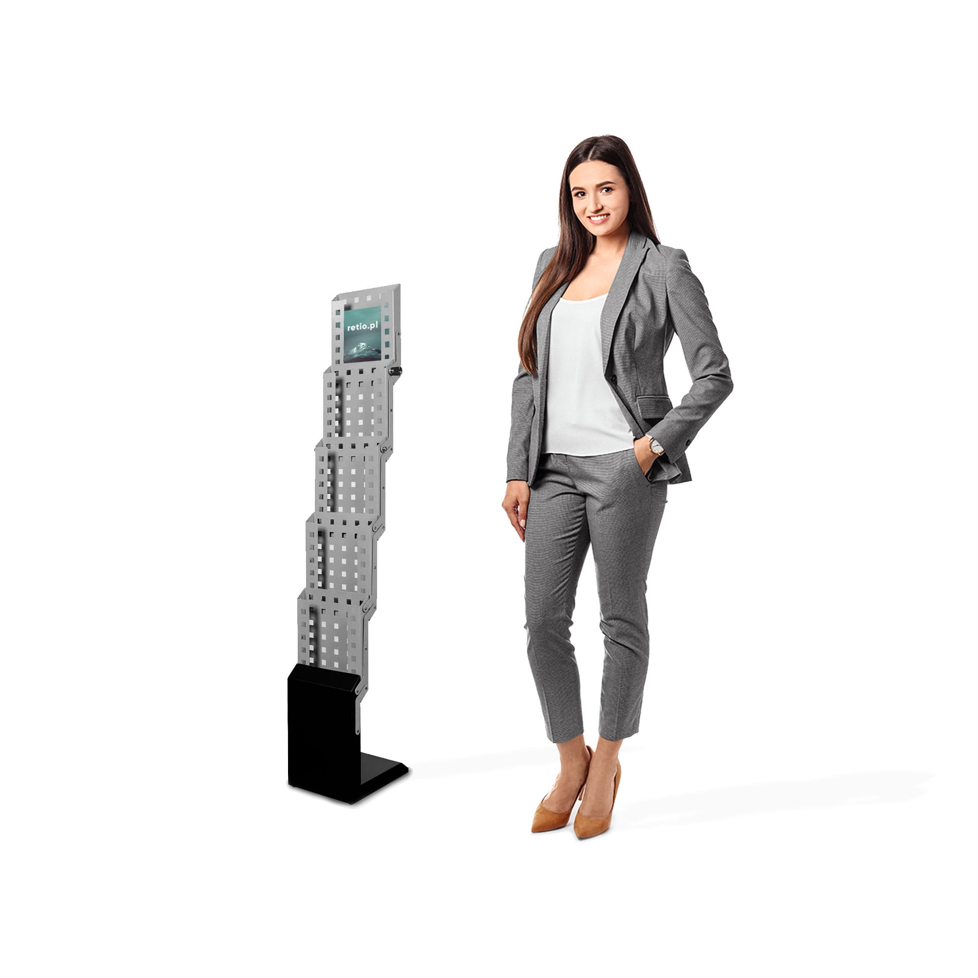 Jednostronny rozkładany stojak na ulotki TORTOISE 5xA4 z torbą - szary