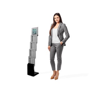 Stojak w całości wykonano z metalu malowanego proszkowo, co skutkuje wyjątkowo trwałą, niezawodną i stabilną konstrukcją. To produkt który będzie spełniał swoją funkcję podczas eventów przez długie lata.