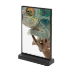 Bardzo praktyczny stojak na menu lub inną informację w formie plakatu do postawienia na stole. Stojaczek posiada sprawdzoną prostą i niezawodną konstrukcję, dzięki czemu jest łatwy w użytkowaniu i wytrzymały. Wymiana treści odbywa się poprzez zdjęcie specjalnego klipsu i jego ponowny montaż po zmiane informacji. Ten konkretny model z podstawą w kształcie litery T ma również możliwość dwustronnej prezentacji treści.