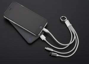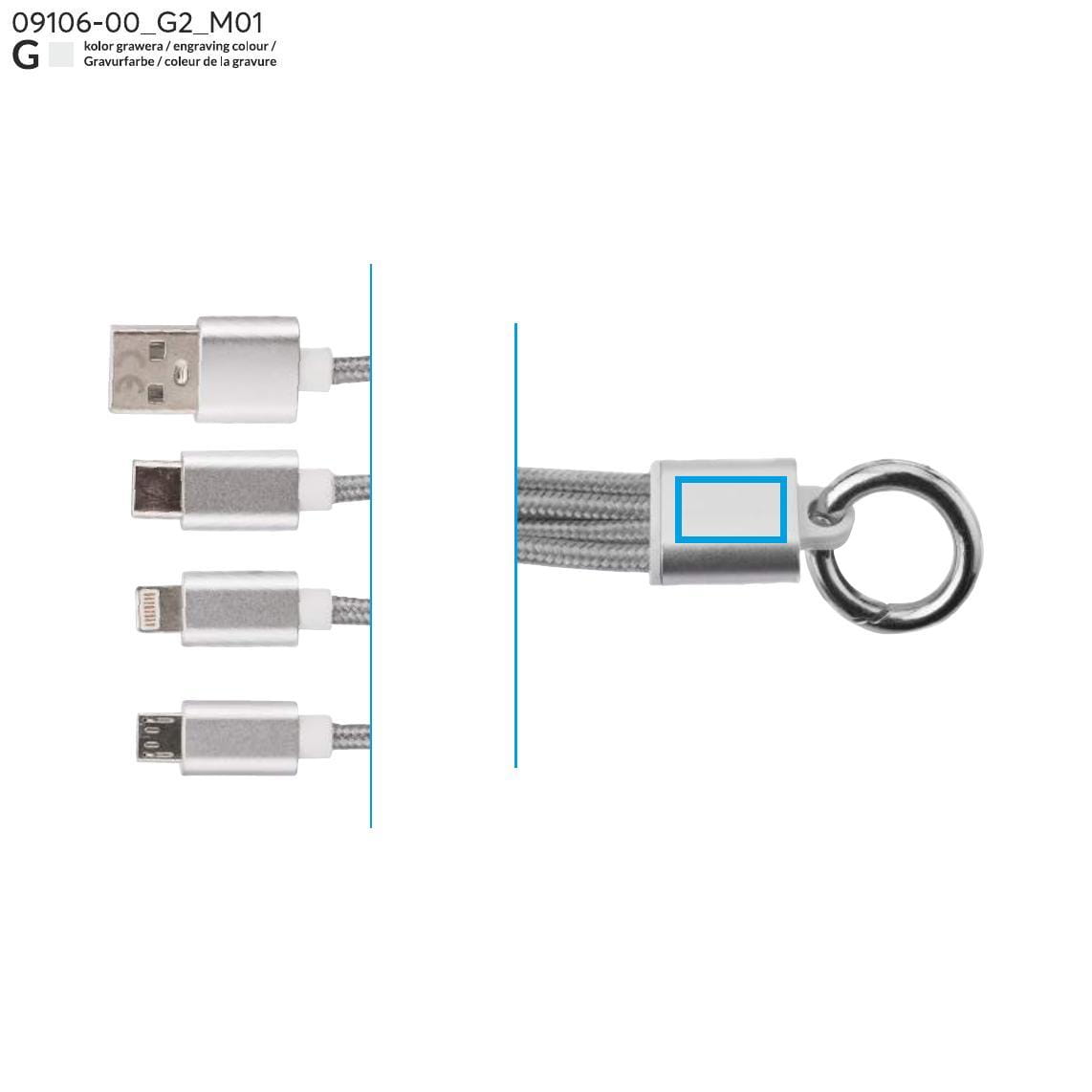 Kabel USB 3 w 1 TAUS srebrny z logo