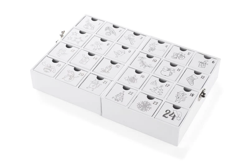 Kalendarz adwentowy CASILLO to wyjątkowy produkt, który wprowadza magiczną atmosferę oczekiwania na święta. Każda z szufladek, ozdobiona pięknymi świątecznymi motywami, kryje w sobie niespodzianki, które umilają codzienne odliczanie do Bożego Narodzenia. Możemy je wypełnić ulubionymi słodyczami, małymi upominkami lub innymi drobiazgami, które przyniosą radość zarówno dzieciom, jak i dorosłym. To doskonały sposób na budowanie świątecznego klimatu i wspólne spędzanie czasu z bliskimi, odkrywając kolejne niespodzianki każdego dnia.