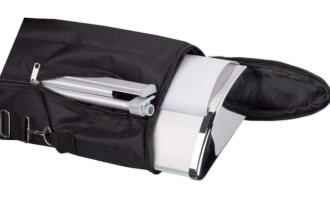 System posiada w cenie torbę transportową typu premium z osobną przegrodą na maszt, a sama kaseta wyposażona jest w listwę "Express Clip", która umożliwia błyskawiczny montaż wydruku w kasecie.