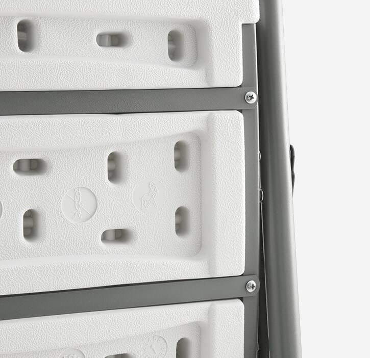 Krzesło posiada bardzo lekką, ale stabilną konstrukcję. Funkcja składania krzesła sprawia, że produkt możemy wygodnie transportować oraz przechowywać. Krzesło jest koloru białego.