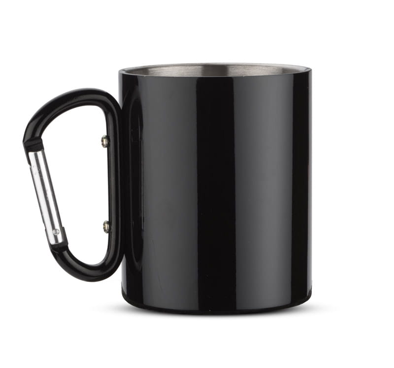 Kubek z karabińczykiem CAMP 250 ml czarny z logo