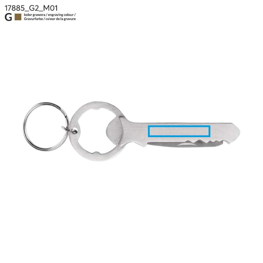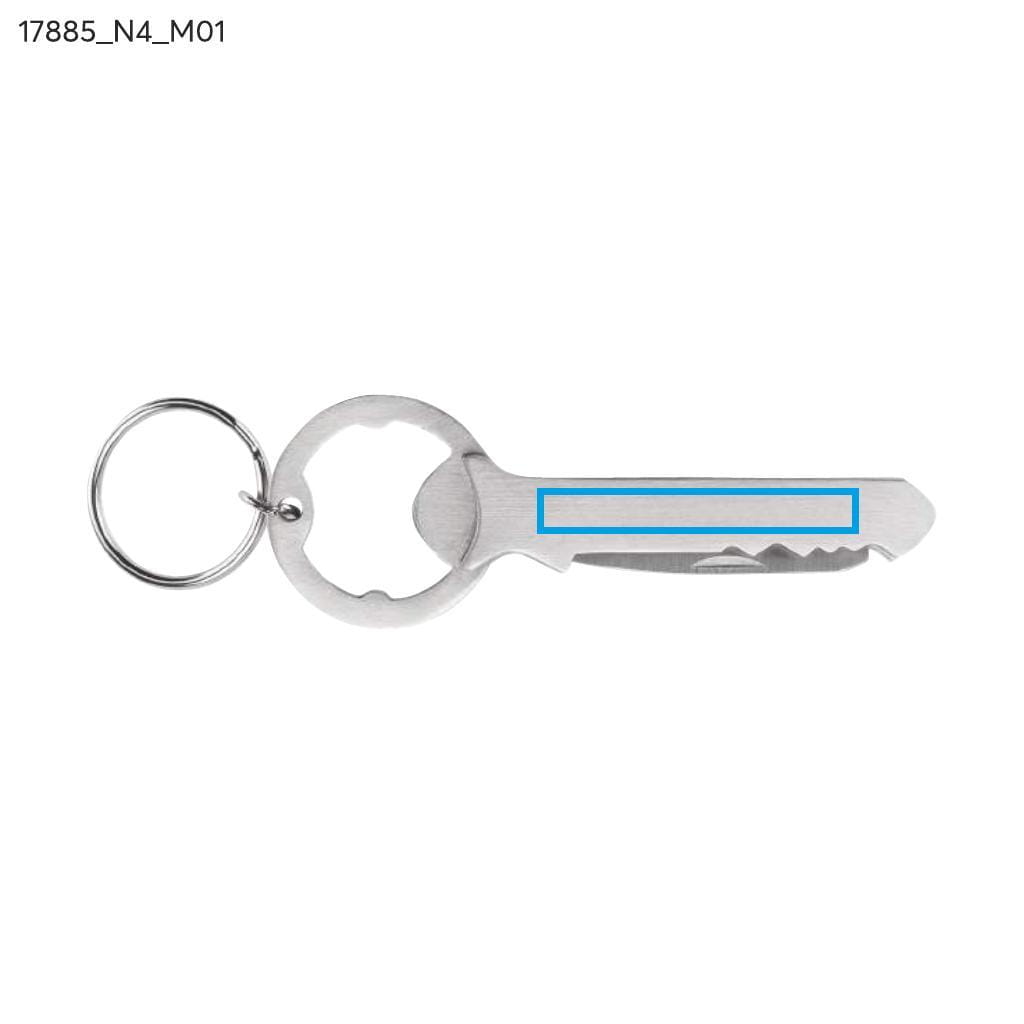 Alco posiada 3 funkcje: brelok, otwieracz do kapsli oraz korkociąg do wina. Wykonany ze stali nierdzewnej. Zapakowany w brązowy kartonik.