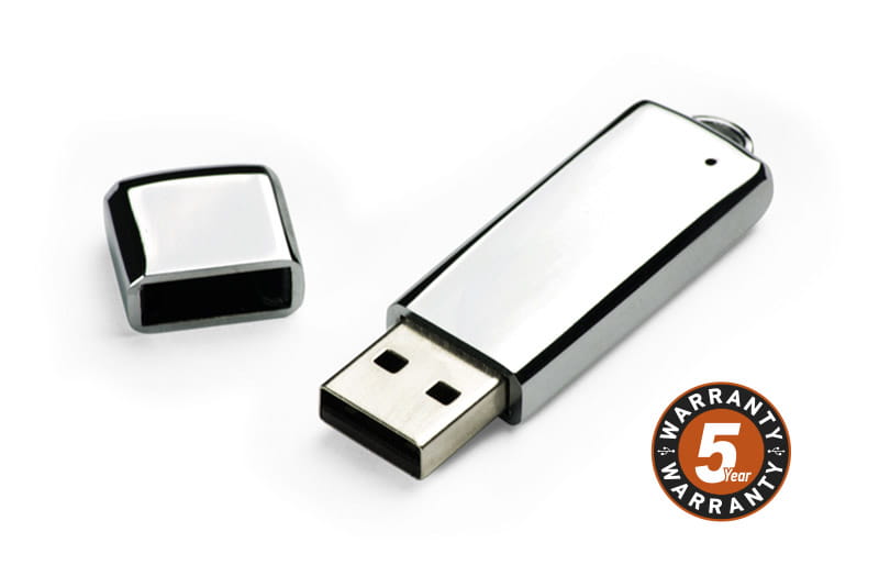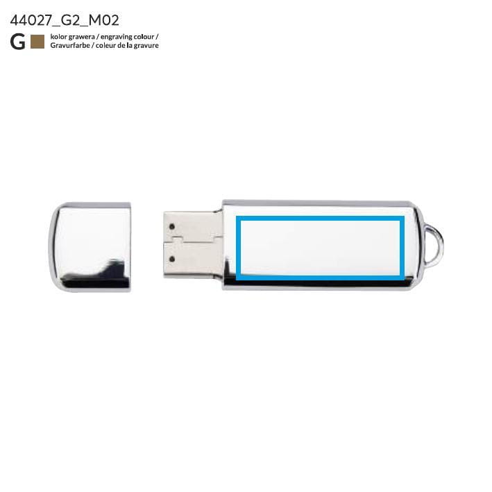Wykonana z chromowanego metalu, przenośna pamięć USB o pojemności 16 GB, idealnie nadaje się upominek reklamowy. Na pamięci wykonujemy znakowanie metodą graweru. Standard USB: 2.0; szybkość zapisu: 5 MB/s; szybkość odczytu: 18 MB/s. Pamięć USB objęta jest 5 letnią gwarancją producenta oraz posiada certyfikat CE.