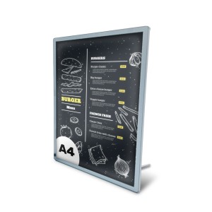 Podświetlana rama plakatowa SUN A4 to eleganckie i funkcjonalne rozwiązanie, które pozwoli podkreślić ważne dokumenty, zdjęcia czy grafiki w każdym pomieszczeniu. Jej uniwersalny design umożliwia użytkowanie na biurku, stole lub ladzie.
