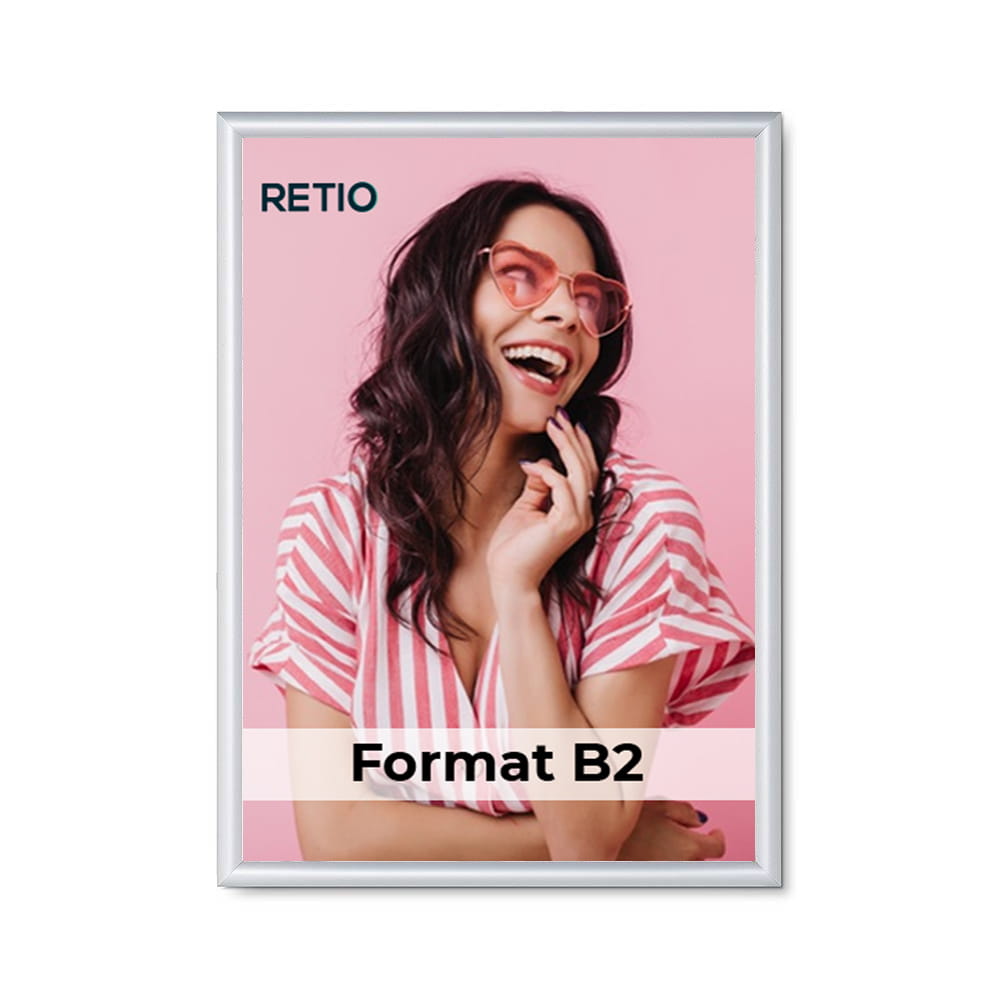 Ramka zatrzaskowa KRAST B2 (50,0 x 70,0 cm) aluminiowa srebrna z ostrym prostym narożnikiem rama ramka plakatowa OWZ ścienna na plakat na zdjęcia profil 25 mm
