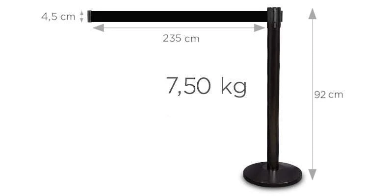 Waga słupka została podniesiona dla zwiększenia użyteczności w mniej korzystnych warunkach i wynosi 7,5 kg. Dzięki temu podstawy zapewniają wysoką stabilność nawet przy pełnym rozciągnięciu taśmy, która po maksymalnym rozwinięciu posiada długość 225 cm.