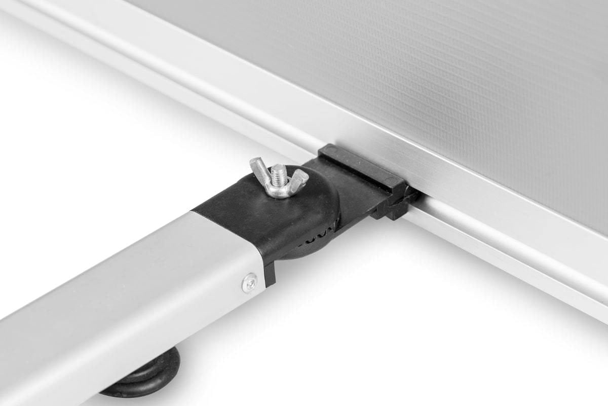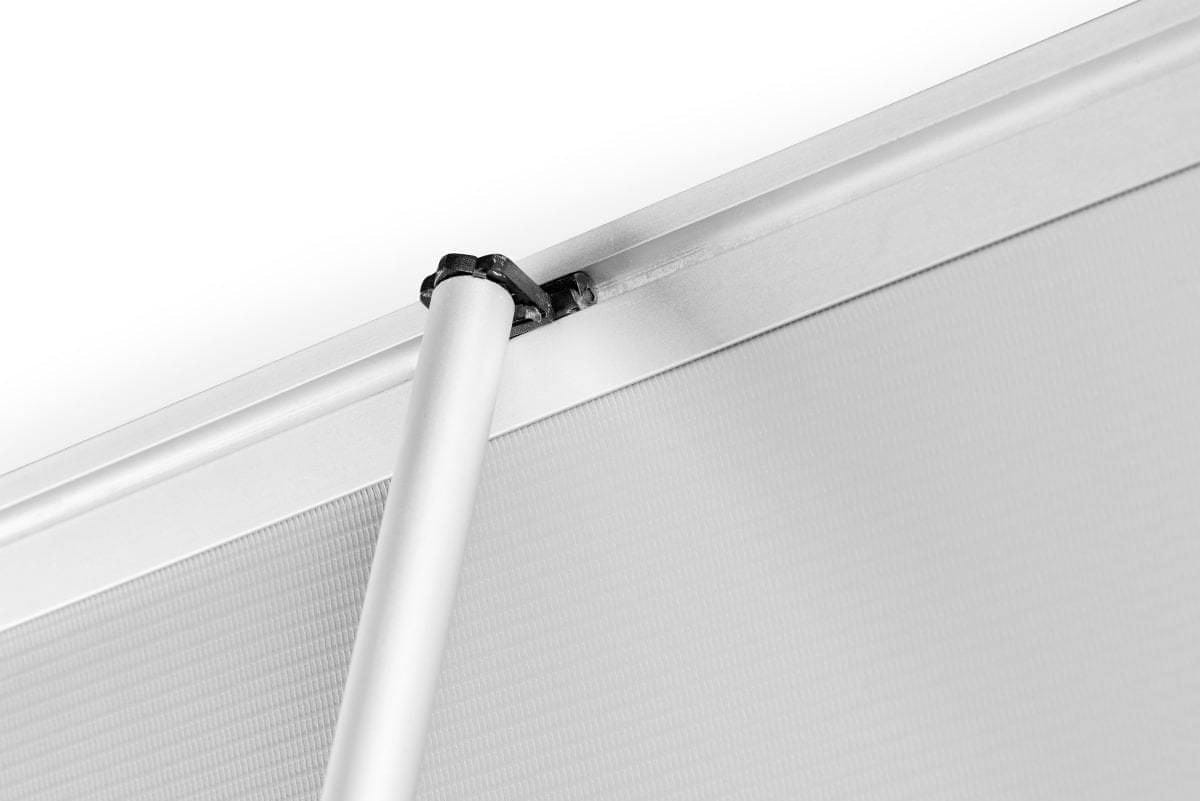 Stelaż L-Banneru Standard 0,8 x 1,8 m to świetna alternatywa dla rollupa, której autem jest jednak brak kasety zaburzającej prezentację grafiki od frontu - widoczne pozostają wyłącznie subtelne listwy montażowe. Montaż oraz demontaż trwa zaledwie kilkanaście sekund.