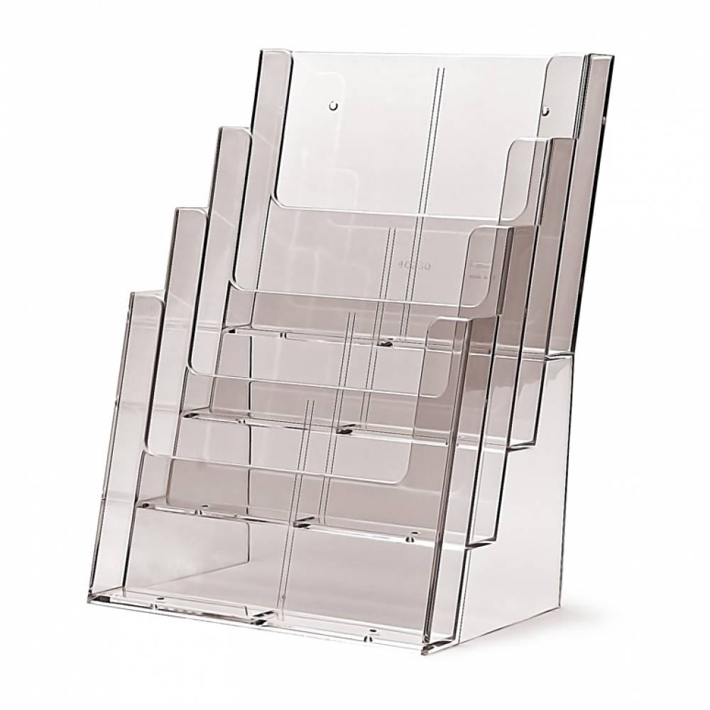 Stojak akrylowy na ulotki Taymar® 4xA4 Portret odlewany stojak kieszeń na ulotki prospekty do postawienia na stół ladę z możliwością powieszenia na ścianie