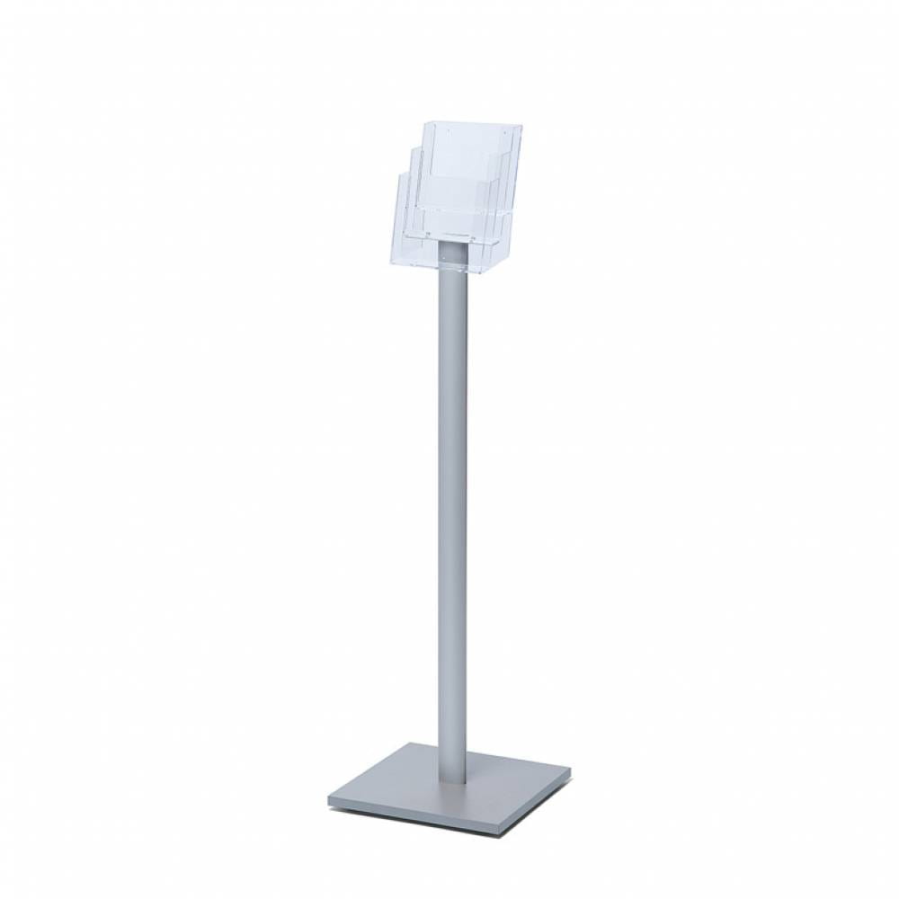 Stojak informacyjny 3xA5 z kieszeniami akrylowymi na ulotki w formacie A5 (210x148 mm) - srebrny