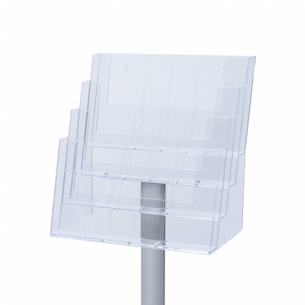 Stojak na ulotki 4xA4 z poziomymi kieszeniami akrylowymi na broszury