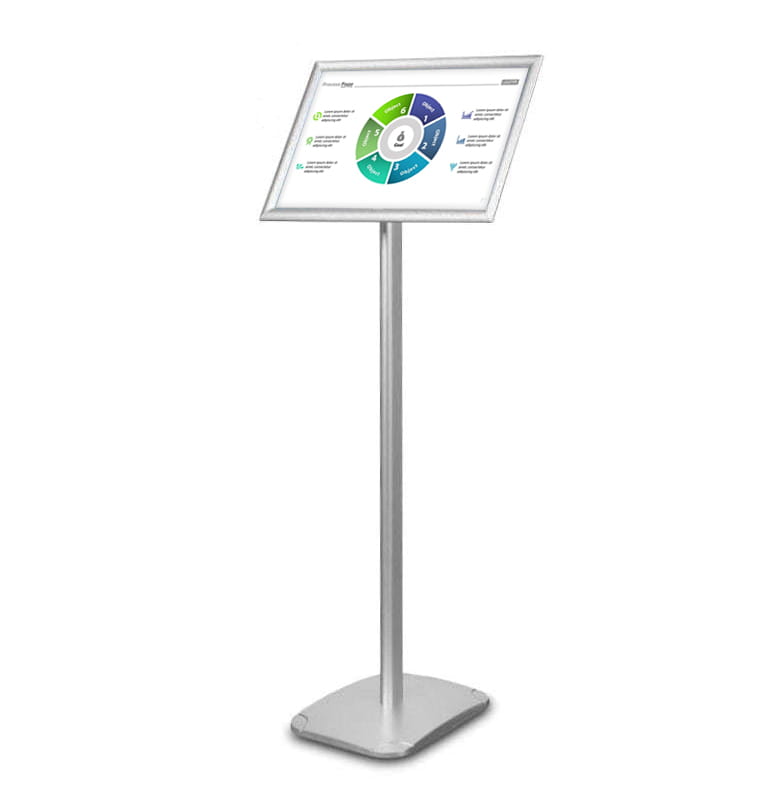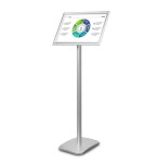 W ofercie RETIO mamy dostępny dla Państwa wyjątkowo elegancki oraz reprezentacyjny stojak informacyjny przeznaczony m.in. do menu restauracyjnego, prezentacji tabliczek informacyjnych, wskazywania kierunków. Produkt jest wykonany z wysokiej jakości materiałów. Konstrukcja wykonana z eleganckiego, anodowanego aluminium. Podstawa obciążona jest płytą metalową z nakładką, z tworzywa sztucznego.