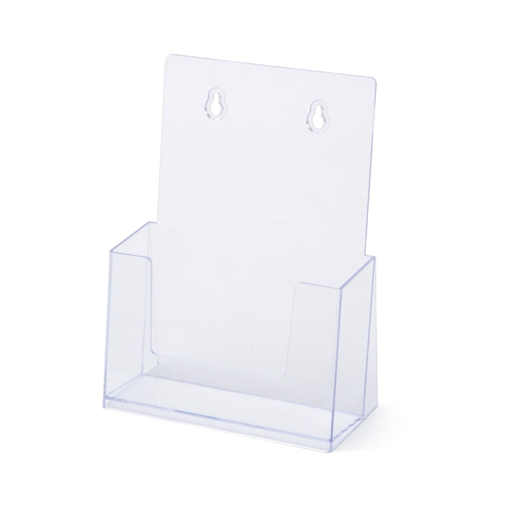 Niezwykle praktyczny i uniwersalny stojak na ulotki w którym możesz umieścić ulotki lub prospekty. Stojak na ulotki wykonany jest z wysokiej jakości przezroczystego polistyrenu. Wykonano go metodą wtryskową, czyli jest to odlew z formy, dzięki czemu uzyskano najwyższą jakość wykończenia i 100% powtarzalność każdej sztuki stojaka.