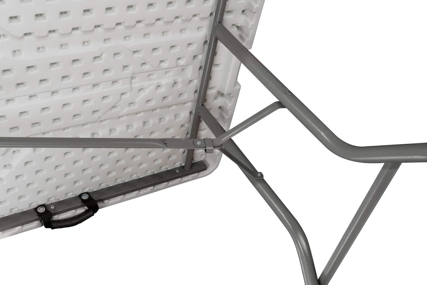 Nasz stół eventowy posiada specjalny system składania, które zajmuje zaledwie kilka sekund. Produkt po złożeniu przypomina walizkę (ZOBACZ ZDJĘCIA!) Produkt można bezproblemowo przechowywać oraz transportować. Jeżeli szukają Państwo stołu, na którym będzie można prezentować/umieścić wiele rzeczy, to on nadaję się do tego idealnie, ponieważ dopuszczalne obciążenie stołu to aż 100kg. Produkt posiada dodatkową blokadę, która chroni przed przypadkowym rozłożeniem. Nogi stołu są zabezpieczone gumowymi nakładkami, które chronią powierzchnię przed zarysowaniem, a stół przed przesuwaniem się.