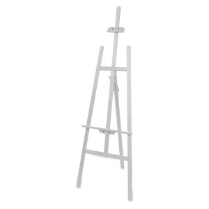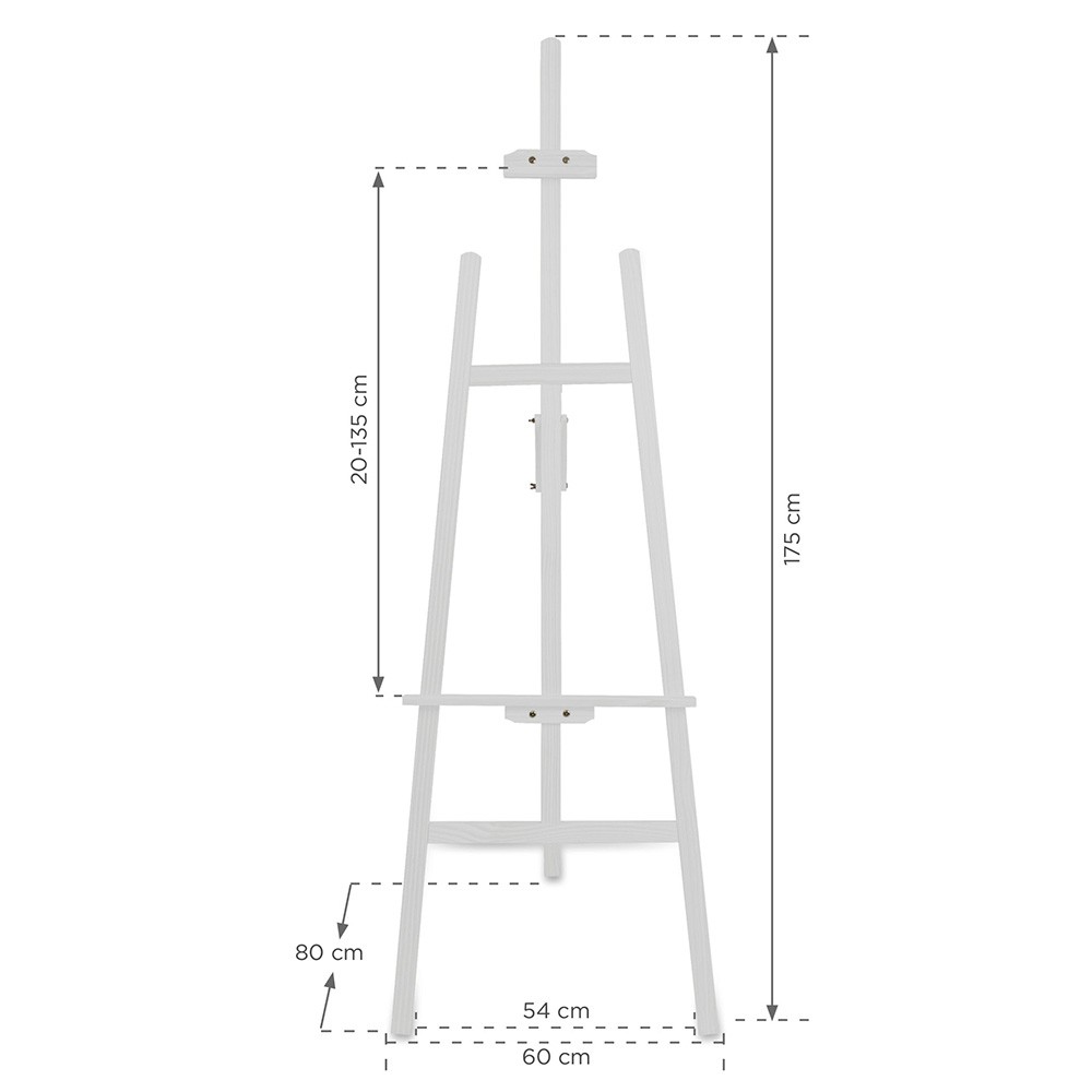 Stabilna, drewniana sztaluga 175 x 60 cm w kolorze białym o szerokim zastosowaniu i regulowanym kącie nachylenia. Produkt sprawdzi się świetnie zarówno jako stojak malarski, jak i nośnik reklamy oraz stojak przeznaczony do ekspozycji ramy lub antyramy ze zdjęciem. Popularny w restauracjach, kwiaciarniach oraz na różnego rodzaju eventach.