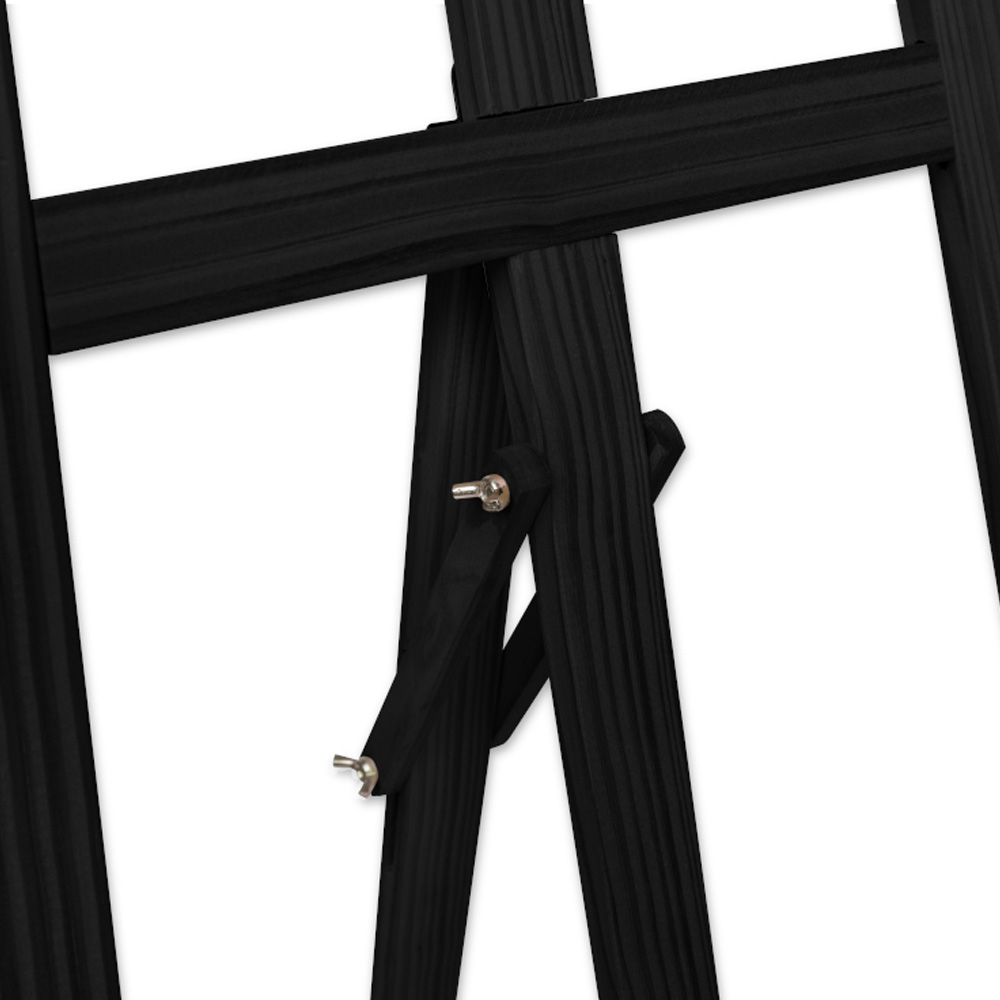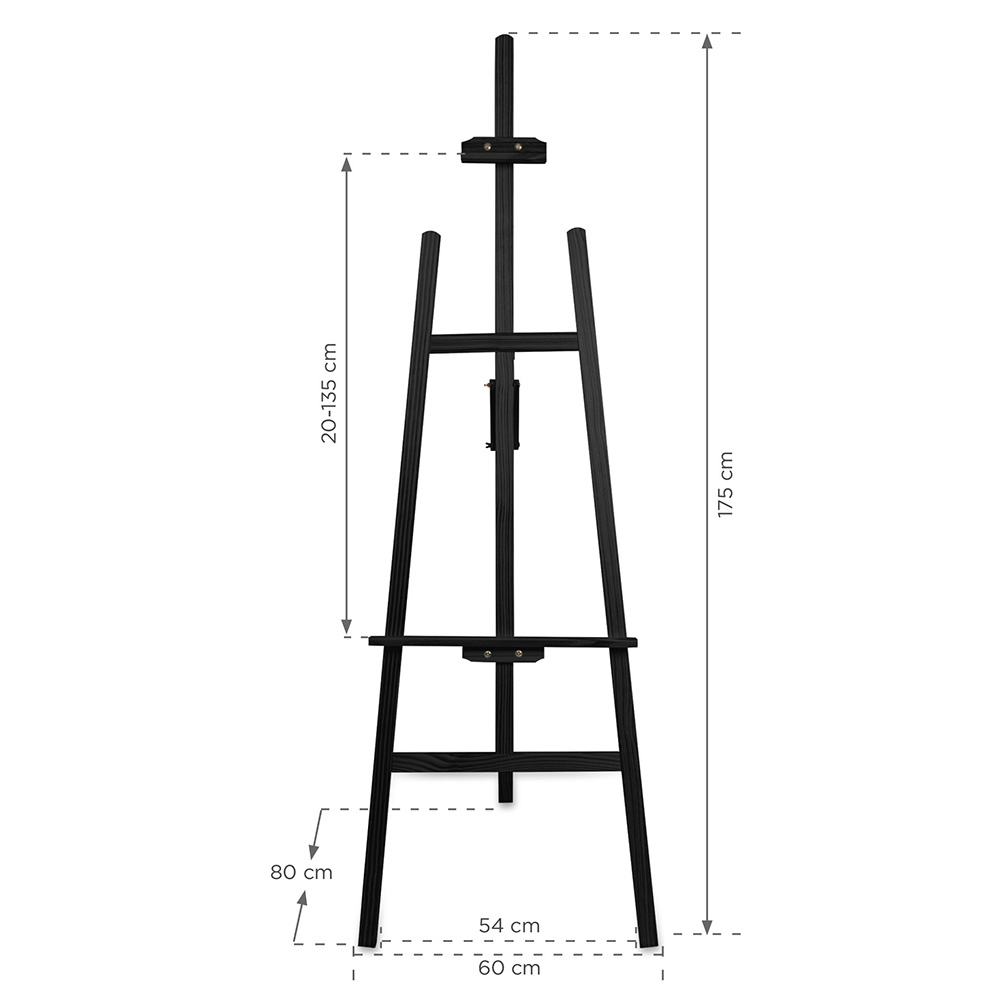 Stabilna, drewniana sztaluga 175 x 60 cm w kolorze czarnym o szerokim zastosowaniu i regulowanym kącie nachylenia. Produkt sprawdzi się świetnie zarówno jako stojak malarski, jak i nośnik reklamy oraz stojak przeznaczony do ekspozycji ramy lub antyramy ze zdjęciem. Popularny w restauracjach, kwiaciarniach oraz na różnego rodzaju eventach.