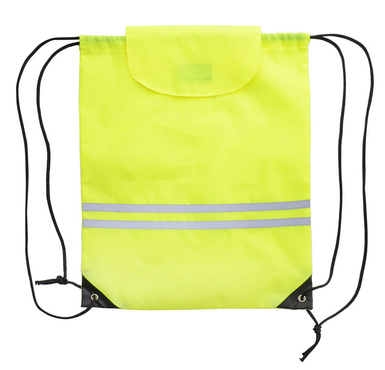 Odblaskowy worek wykonany z poliestru. Posiada sznurki oraz zapięcie na rzep umożliwiające szybkie zamykanie worka.