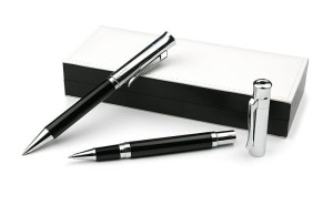 Komplet piśmienniczy WASHINGTON D. C. zawiera metalowy długopis i pióro kulkowe oraz etui wykonane z ekoskóry. Elementy zostały zapakowane w białe pudełko. Logo grawerujemy na długopisie i piórze.