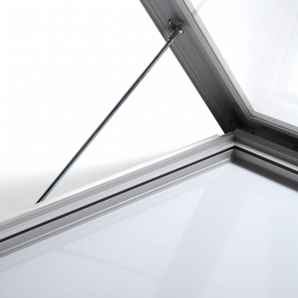 Łatwe otwieranie i przypinanie treści: Gablota otwiera się od dołu, w maksymalnym kącie nachylenia do 55 stopni, co ułatwia dostęp do zawartości. Dodatkowo przy większych rozmiarach od 12xA4 mechanizm otwierania posiada specjalne siłowniki gazowe, które zapewnią Ci płynne otwieranie. Metalowa ściana tylna pozwala na łatwe przypinanie treści za pomocą magnesów.