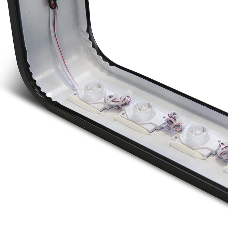 Rama została wykonana z aluminium lakierowanego proszkowo, co zapewnia lekkość i odporność na korozje. Lico kasetonu wykonano z plexi. Zintegrowane podświetlenie LED jest energooszczędne i efektowne, zapewniając doskonałą widoczność Twojej reklamy także po zmroku.
