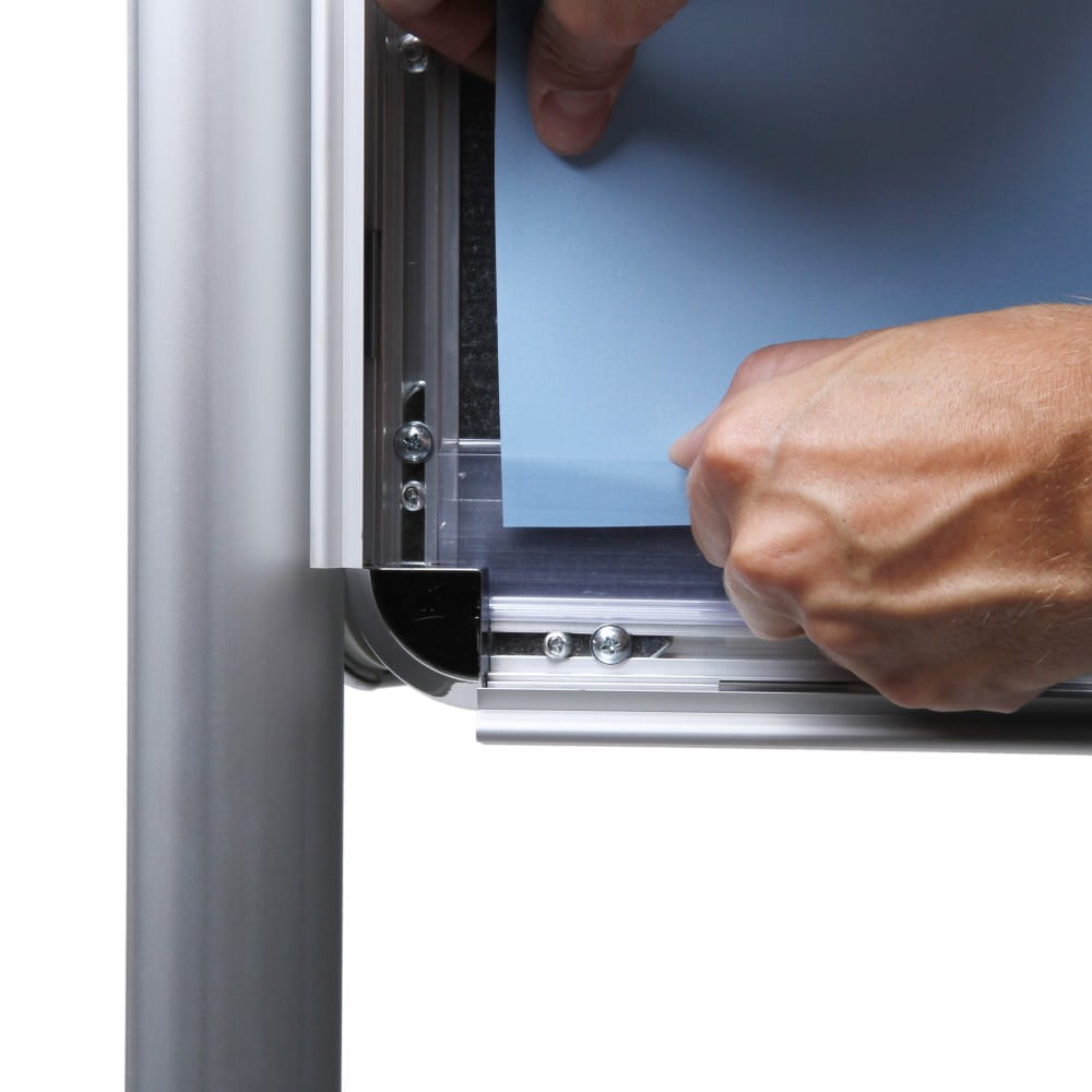 Stojak jest odporny na warunki atmosferyczne. Tablice w które został wyposażony posiadają zabezpieczenie treści w postaci folii ochronnej UV, a także posiadają specjalne otwory odprowadzającę wodę, która może dostać się pod profil. Dodatkowo umieszczony wewnątrz ram plakat jest przytrzymywany przez pasek z tworzywa sztucznego, co ułatwia montaż plakatu i także chroni plakat przed wilgocią.