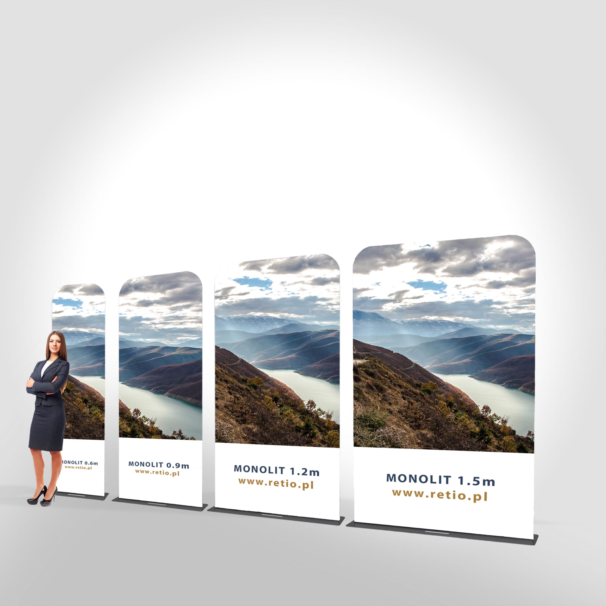 Monolith to wolnostojąca, lekka ścianka tekstylna stworzona z aluminium. Szeroka, stalowa podstawa, w jaką została wyposażona stabilizuje nośnik na podłożu i zapobiega jego naruszeniu. Do montażu tego stelaża nie potrzebujemy żadnych dodatkowych narzędzi, co jest dużym atutem tych systemów.