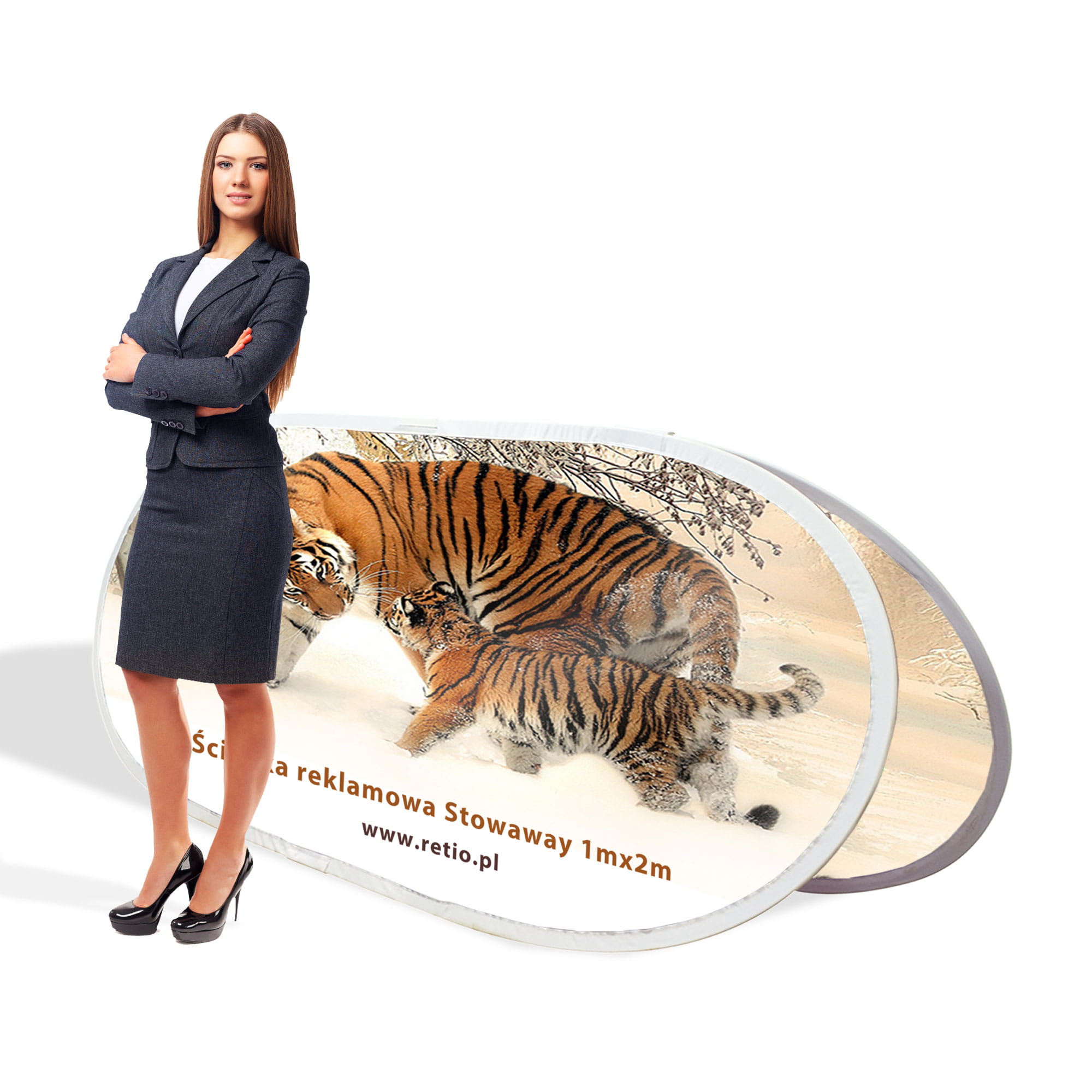 Stowaway to konstrukcja owalna, dwustronna, opierająca się na stopkach stworzonych z włókna szklanego pokrytego materiałem. Doskonale sprawdzająca się nawet do stosowania outdoor'owego (zewnętrznego). Stelaż obszyty materiałową tasiemką wykonany jest również z włókna szklanego, aby nadać systemowi odpowiedniej lekkości. Całość mocowana jest do podłoża za pomocą kołków (szpili), co pozwala nam na używanie nośnika nawet na naturalnym gruncie (trawniku, glinie itp.) oraz zapobiega porwaniu przez podmuchy wiatru.
