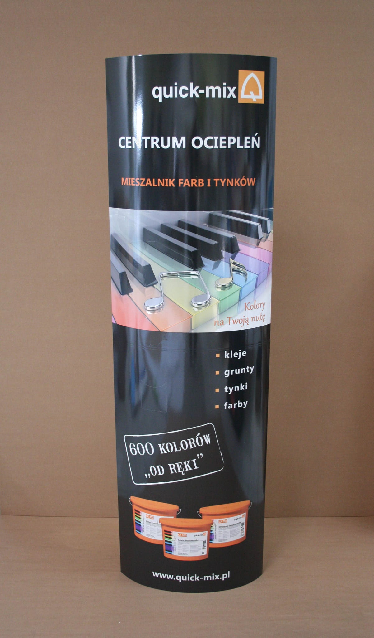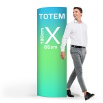 Kształt totemu pozwala na ekspozycję nadruku indywidualnego zarówno z przodu, jak i z tyłu, zapewniając maksymalną widoczność reklamy z każdej strony.