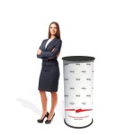Szukacie ekonomicznego rozwiązania na trybunkę reklamową? Musicie przyoszczędzić zarówno na kosztach, jak i zajmowanej powierzchni użytkowej? Zdecydujcie się Państwo na Trybunkę Basic Okrągłą. Jest niedroga, smukła, odpowiednio wysoka, kształtem przypomina wieżyczkę, w ciekawy sposób prezentuje grafikę reklamową. Doskonale sprawdza się jako punkt informacji, punkt, w którym hostessy witają gości czy rozdają ulotki reklamowe.