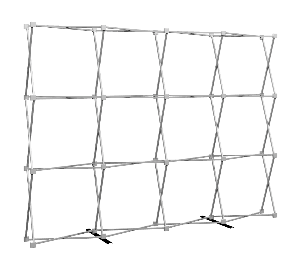 - Ścianka pop-up 3m prosta, czyli aluminiowa konstrukcja z magnetycznymi zawiesiami, do których zamocowane jest 6 paneli PCV Latex, z grafiką;